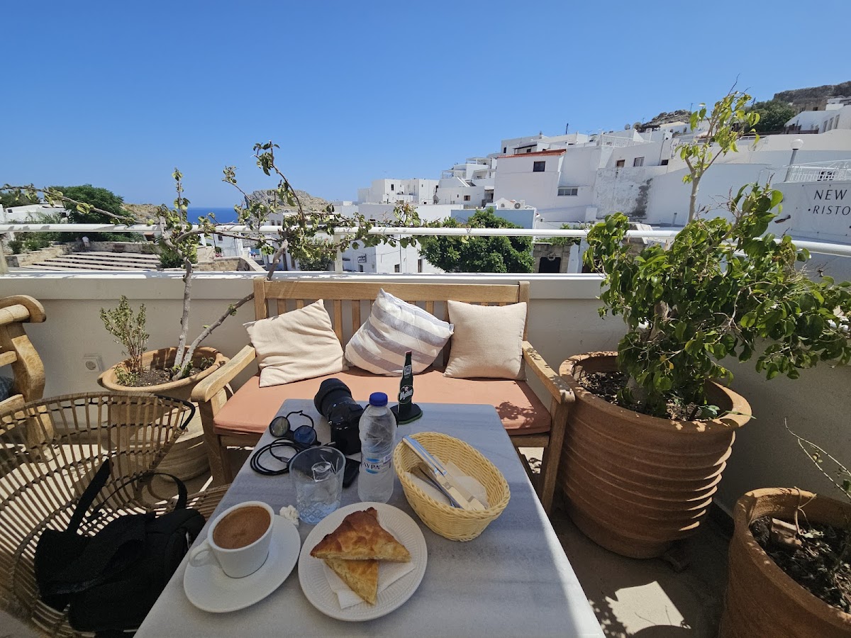 Probably the best restaurant tested around Lindos. We dropped our kids for a long morning dive and found this place to start the day with a big breakfast. The rooftop was perfect quiet and waiter super smart with lot of humour. Such details you like when you would rather have had a longer night in your bed. Recommend this lovely place for a cool morning break with a nice view.